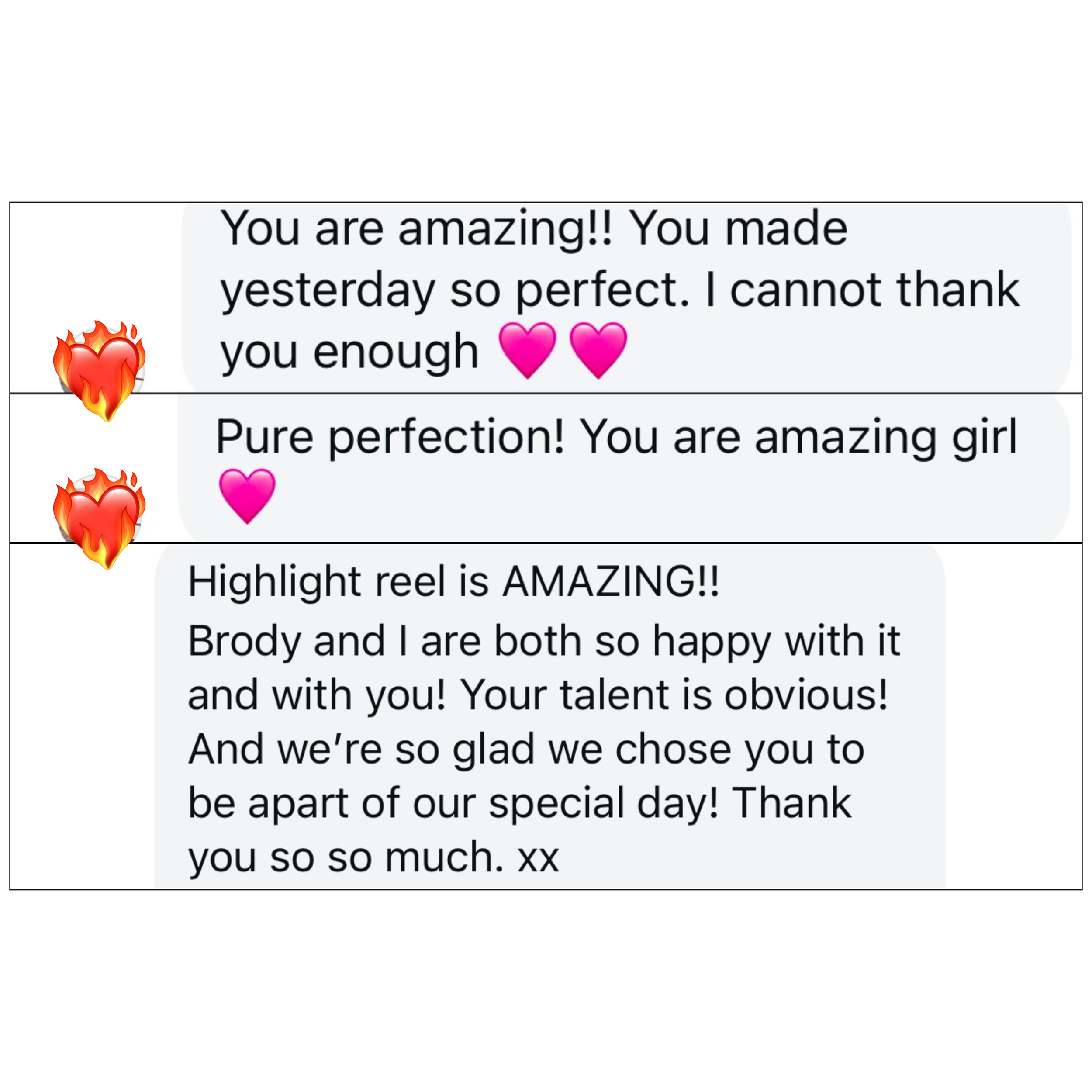 You don’t wait weeks. I deliver raw footage within 24 hours, and edited, ‘grammable content within 48-72 hours so you can share it and relive it.